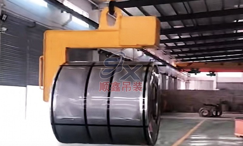 翻轉(zhuǎn)吊具通過機械剪力原理,對立式擺放的卷鋼進行單邊抓取,來完成卷鋼的裝卸,當改變重力點時,可以對卷鋼進行翻轉(zhuǎn),作業(yè)時不傷鋼卷。其吊耳采用加厚處理,焊縫飽滿牢固、延長使用壽命。